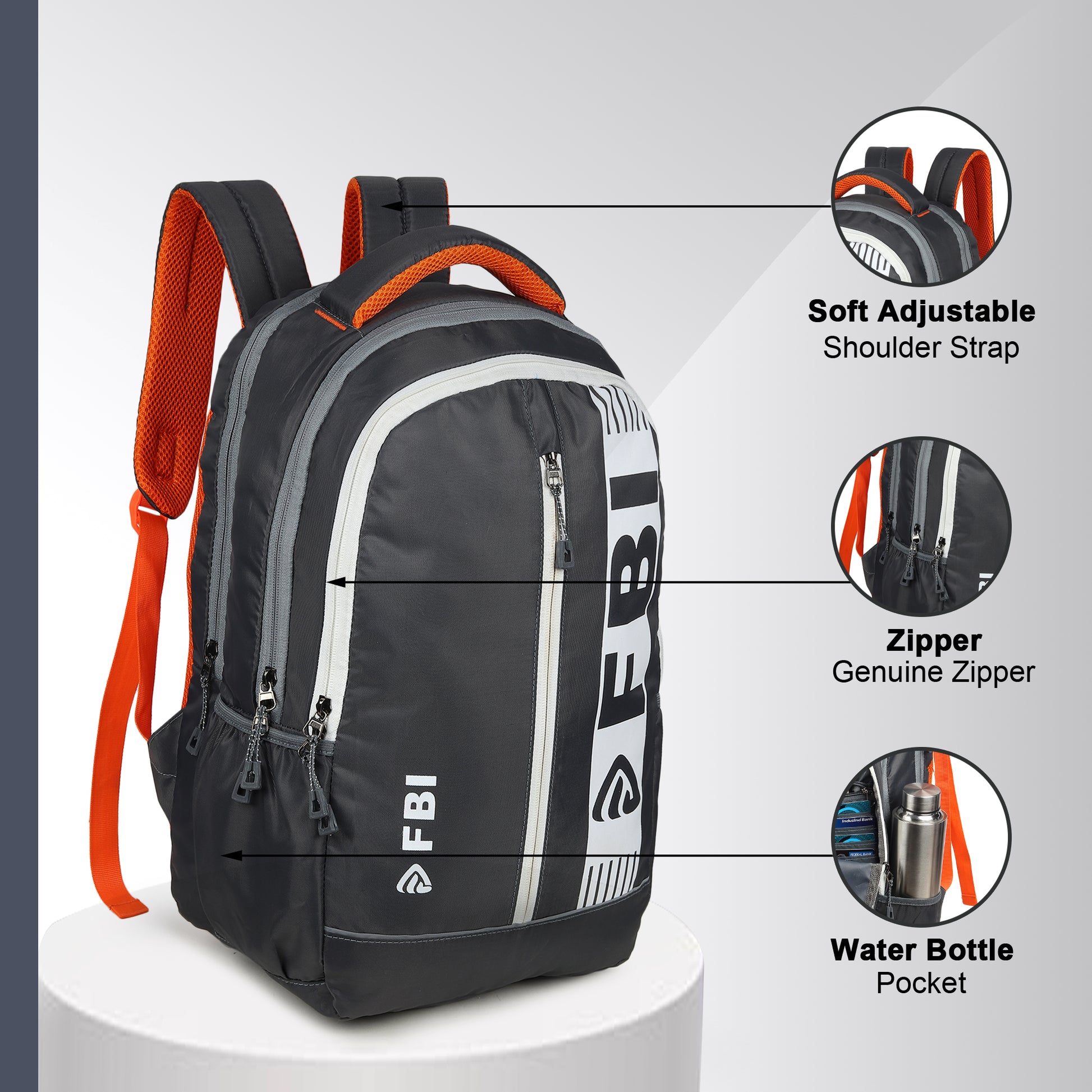 Fbi Water Resistant Adjustable Strap High Quality Padded Mesh Soft Shoulder Strap Water Bottle Pocket 35L Backpack Fbi-105 Black, Fbi-105 Grey.